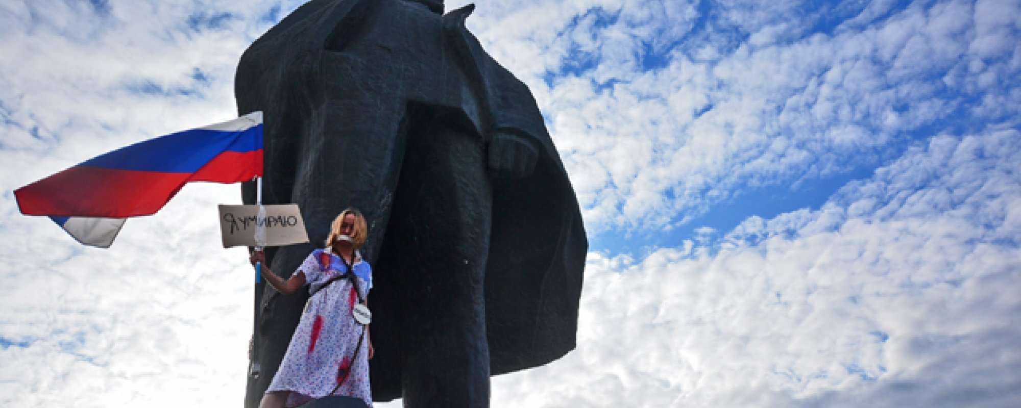 Основная идея — показать умирающую Россию: это должно быть молча и с кровью. Ночнушка символизирует спящую Россию. Завязанный рот — это цензура. Цепи — это безысходность.