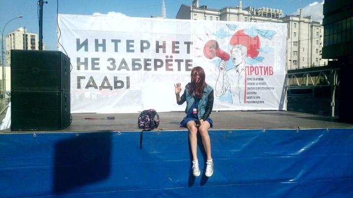Первоначально текст плаката гласил: «Интернет не заберете, гады». В настоящий момент слово «гады» отрезано.