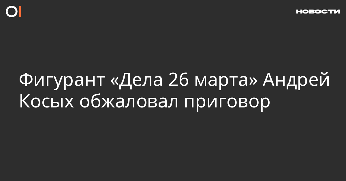 Фигурант «Дела 26 марта» Андрей Косых, осужденный на четыре года колонии общего режима, подал жалобу на приговор. Об этом пишет «Интерфакс».