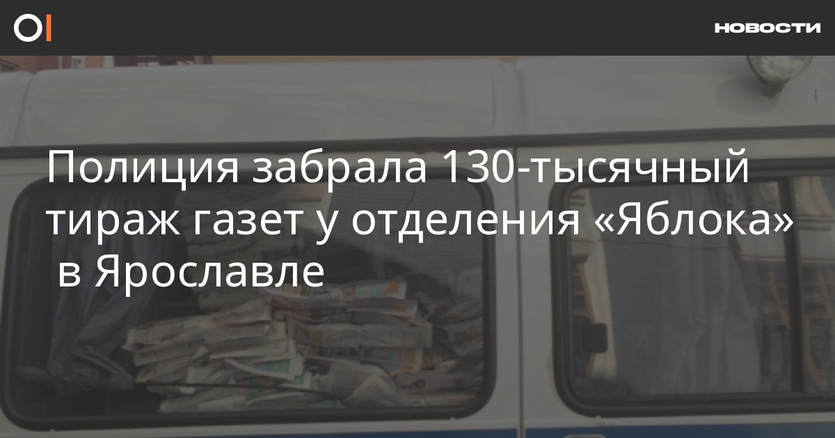 В Ярославле полиция в 9 утра забрала 130-тысячный тираж предвыборной газеты местного отделения партии «Яблоко». Протокол изъятия при этом не составили, сообщается на сайте партии.