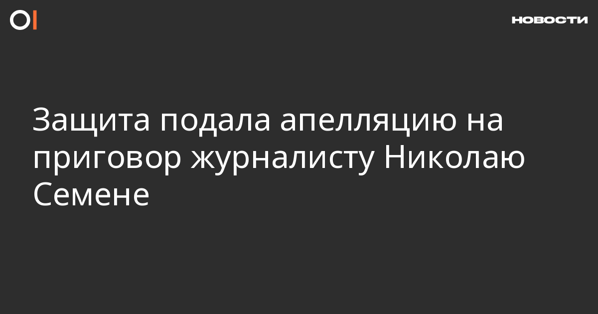 Защита обжаловала приговор журналисту Николаю Семене, которого признали виновным в призывах к сепаратизму (ст. 280.1 УК). Об этом пишет «Интерфакс» со ссылкой на адвоката Александра Попкова.