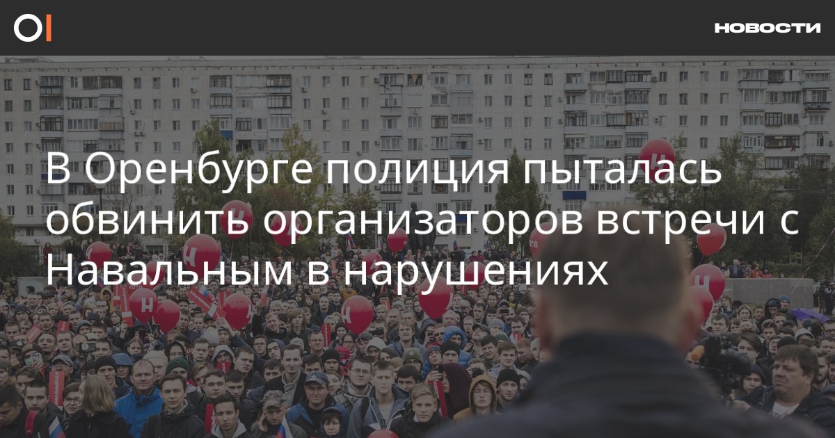 Полиция в Оренбурге 30 сентября пыталась обвинить организаторов митинга-встречи с Алексеем Навальным в превышении количества участников митинга и в нарушении времени проведения мероприятия. Об этом ОВД-Инфо сообщила координатор местного штаба Наталия Трубачева.