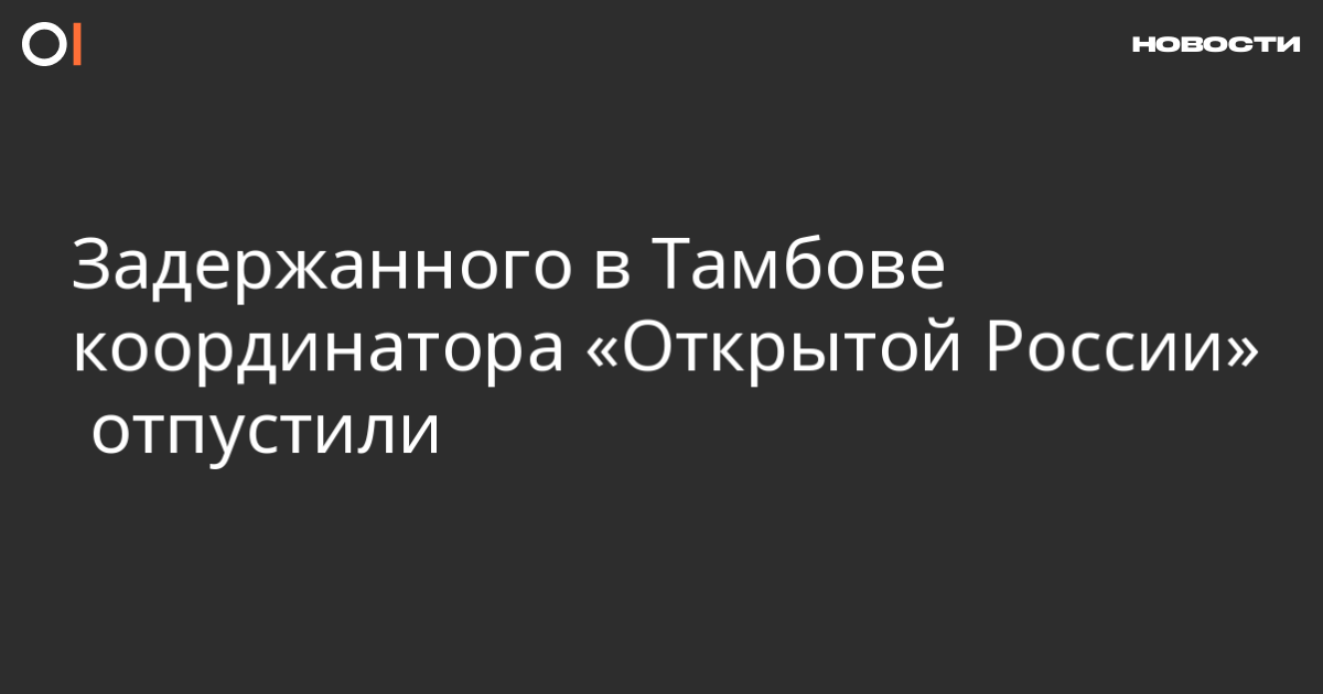 Задержанного в Тамбове координатора движения «Открытой России» Владимира Жилкина выпустили из полиции. Об этом сообщается на сайте движения.