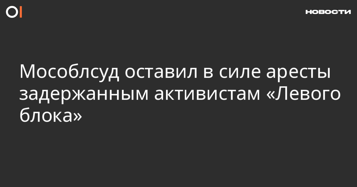 Московский областной суд 6 октября оставил в силе решения суда об аресте четырех активистов «Левого блока». 25 сентября Одинцовский городской суд арестовал восьмерых активистов на сроки от трех до четырнадцати суток за неповиновение законным требованиям сотрудников полиции. Об этом «Левый блок» сообщил в пресс-релизе.