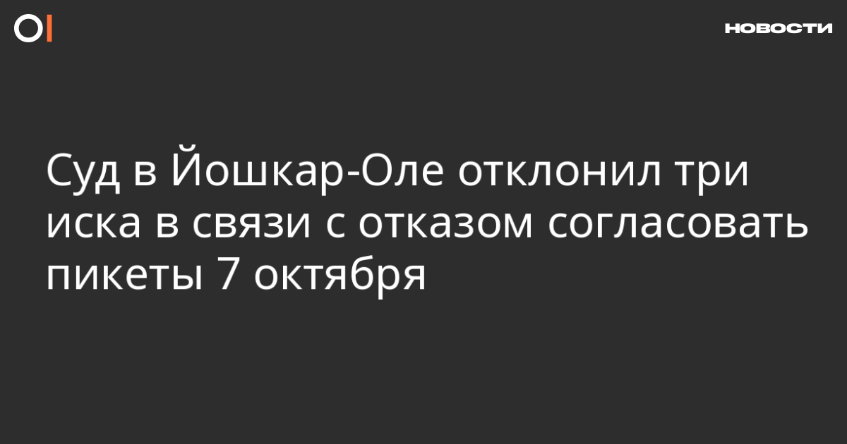 Йошкар-Олинский городской суд не удовлетворил три иска штаба Алексея Навального в связи с отказом администрации согласовать три пикета 7 октября. Об этом пишет портал «7×7».