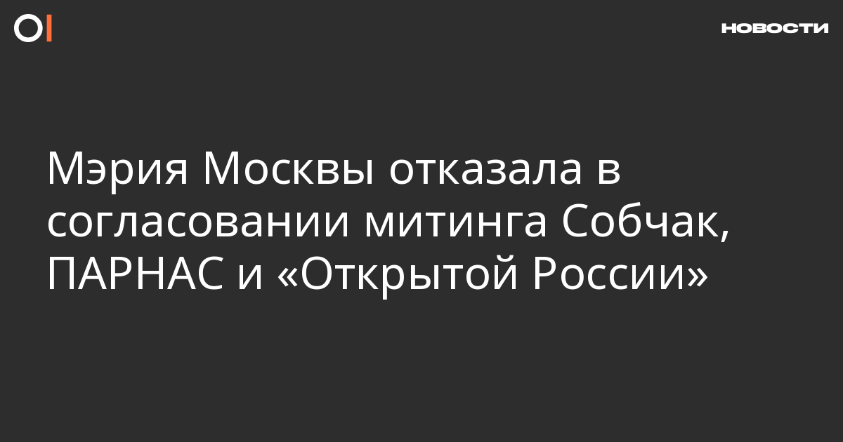 Мэрия Москвы отказала в согласовании митинга «В защиту Конституции», который планировали провести по Бульварному кольцу от Страстного бульвара до проспекта Академика Сахарова. Об этом сообщается на сайте ПАРНАС.