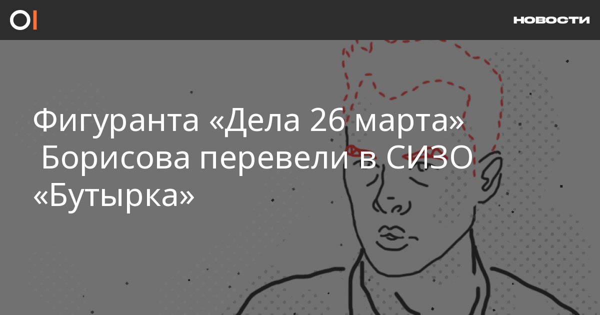 Фигуранта «Дела 26 марта» Дмитрия Борисова перевели из следственного изолятора «Водник» в «Бутырку». Об этом стало известно на заседании в Тверском районном суде 13 декабря.