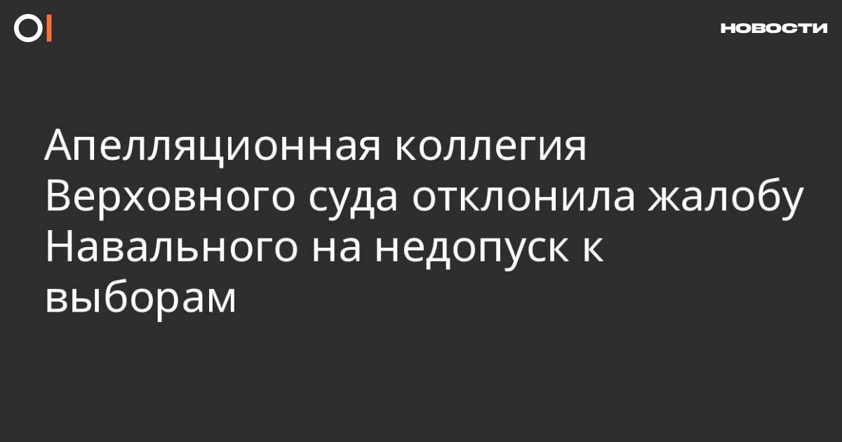 Апелляционная коллегия Верховного суда (ВС) не удовлетворила жалобу Алексея Навального на постановление ВС, признавшее законным решение Центральной избирательной комиссии (ЦИК) о недопуске политика к выборам. Об этом пишет «Медиазона».