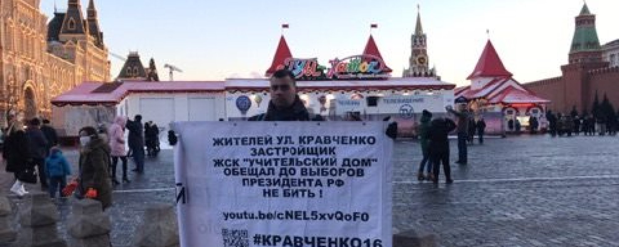 Рядом с Красной площадью задержан гражданский активист Иван Климов. Молодой человек стоял в одиночном пикете с плакатом «Жителей улицы Кравченко застройщик ЖСК „Учительский дом“ обещал до выборов президента не бить». О задержании Климов сообщил по горячей линии ОВД-Инфо.