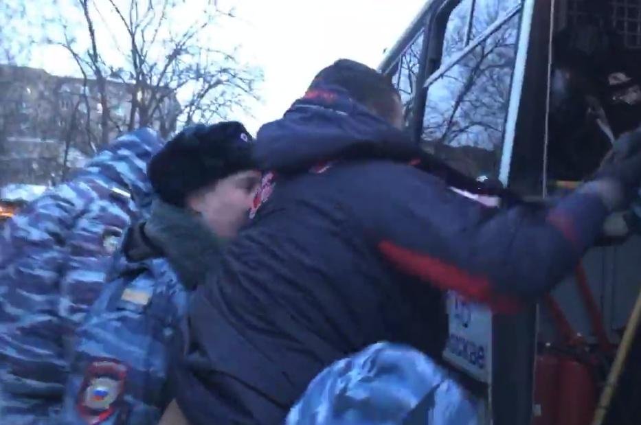 UPD 16:46, 19 января: Во время задержания Ивана Климова правоохранители применяли к нему силу, пишет «Activatica» со ссылкой на рассказ самого активиста. В автозак Климова несли, схватив за руки и за ноги, хоть он и просил полицию дать ему зайти в автобус самостоятельно. В результате активисту повредили ногу.