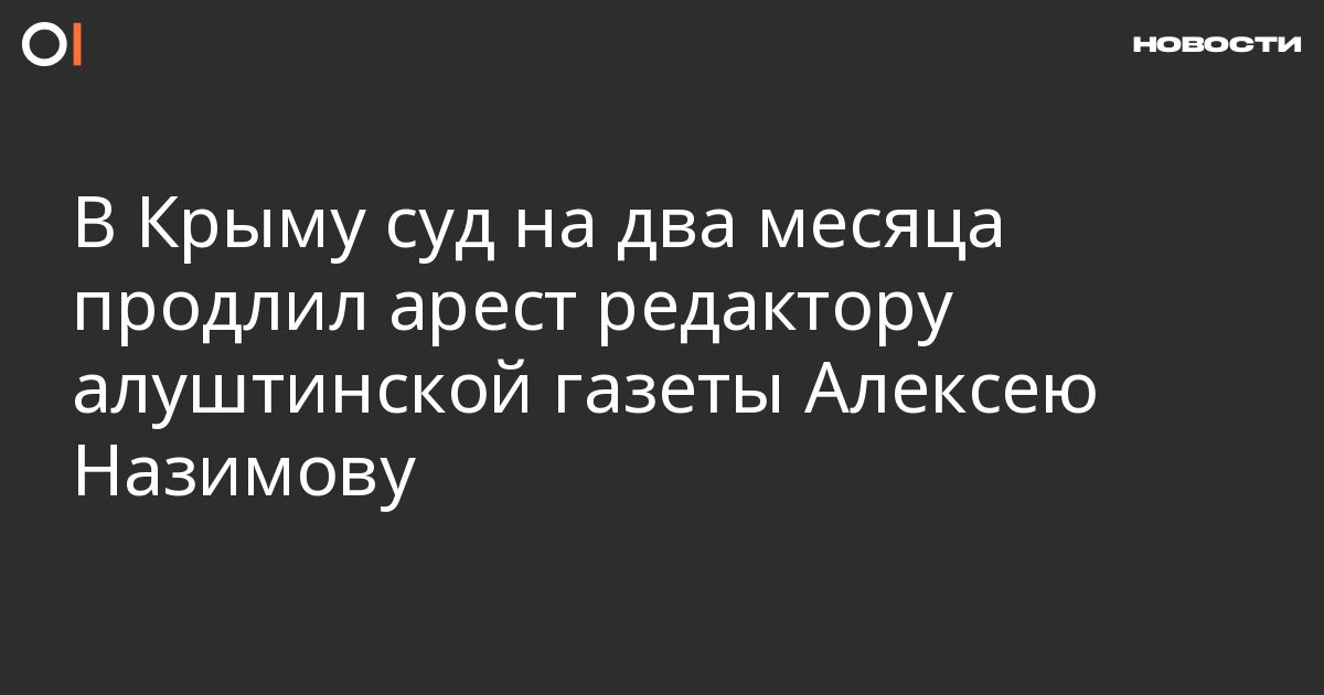 В Крыму Алуштинский городской суд на два месяца продлил арест редактору издания «Твоя газета» Алексею Назимову. Его обвиняют в вымогательстве (ст. 163 УК) у представителя партии «Единая Россия». Об этом пишет «Крым. Реалии» со ссылкой на адвоката обвиняемого Алексея Ладина.