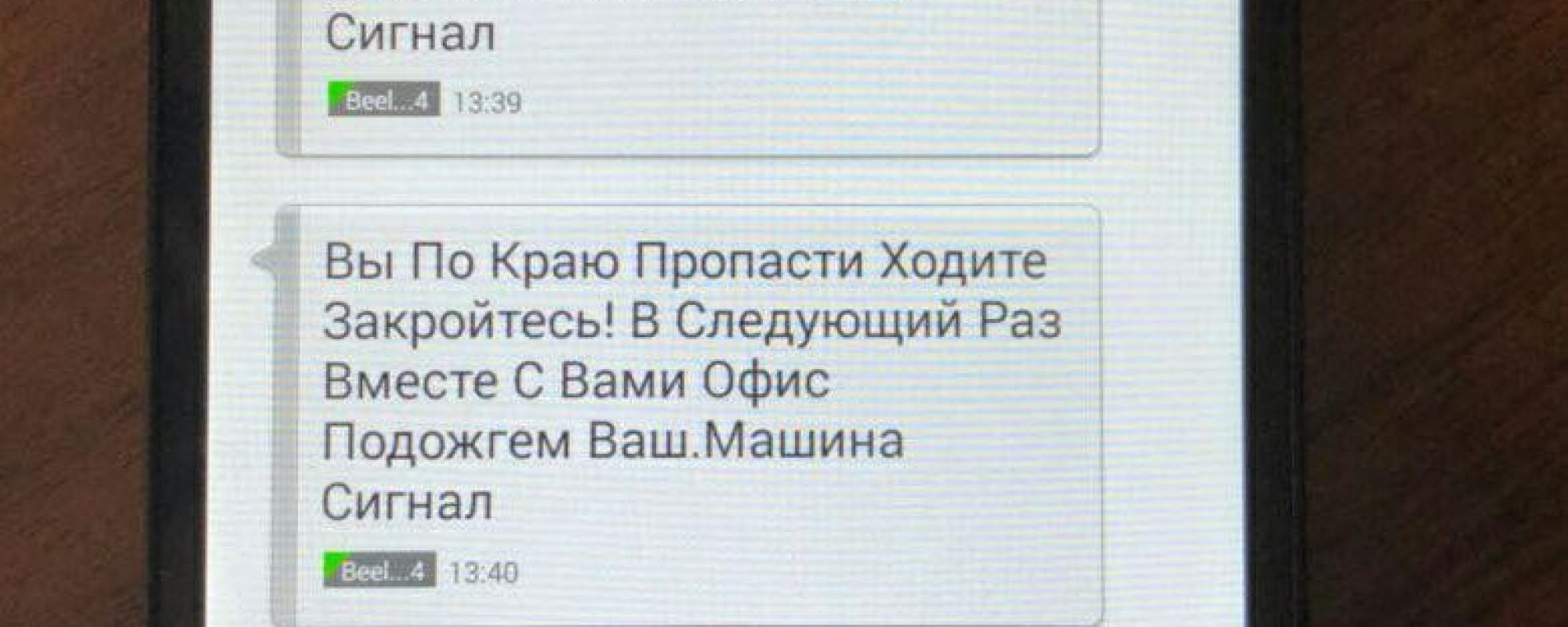 Автор этих сообщений пишет, что поджог машины правозащитного местного «Мемориала», который произошел вечером 22 января, — сигнал. «В Следующий Раз Вместе С Вами Офис Подожгем Ваш» (орфография оригинала сохранена), — говорится в полученных посланиях.