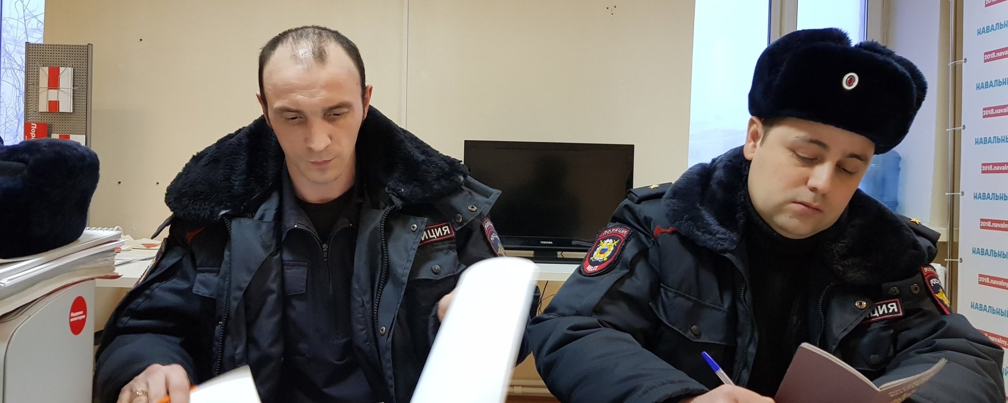 Сотрудники полиции провели обыск помещения, изъяли технику и листовки с информацией об акции. По итогам обыска правоохранители составили протокол по ст. 5.12 КоАП (изготовление, распространение или размещение агитационных материалов с нарушением требований законодательства).