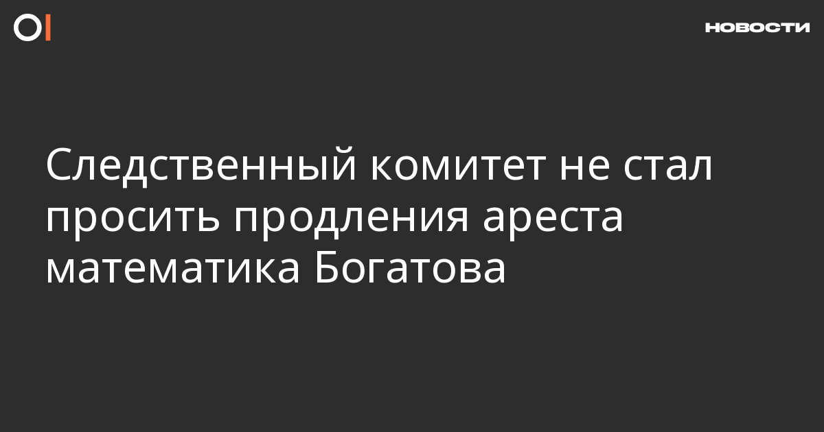 Следственный комитет не стал просить суд продлить срок ареста для математика Юрия Богатова, обвиняемого в попытке организации массовых беспорядков и терроризме. Об этом сообщает ТАСС со ссылкой на источник в правоохранительных органах.
