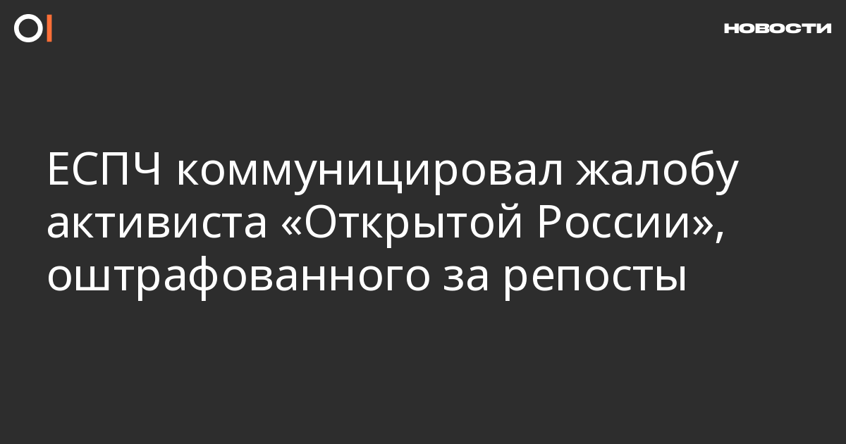 Европейский суд по правам человека (ЕСПЧ) коммуницировал жалобу координатора движения «Открытая Россия» в Чувашии Дмитрия Семенова, сообщают «Ведомости». Активиста сначала оштрафовали за репост фотографии с депутатом Виталием Милоновым в футболке с лозунгом «Православие или смерть», а затем за репост новости о том, что его оштрафовали.