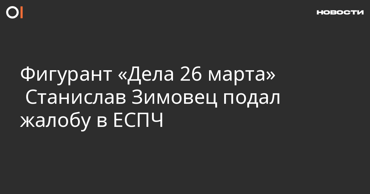Фигурант «Дела 26 марта» Станислав Зимовец, осужденный на два с половиной года лишения свободы, подал жалобу в Европейский суд по правам человека (ЕСПЧ). Об этом сообщает «Коммерсант» со ссылкой на адвоката Международной правозащитной группы «Агора» Александра Попкова, который направил жалобу в суд.