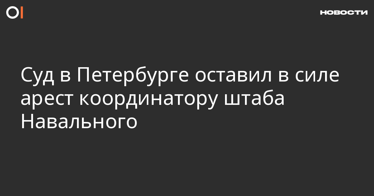Городской суд Санкт-Петербурга оставил в силе решение Октябрьского районного суда, который арестовал на 30 суток координатора штаба Алексея Навального Дениса Михайлова. Об этом сообщает Объединенная пресс-служба судов.