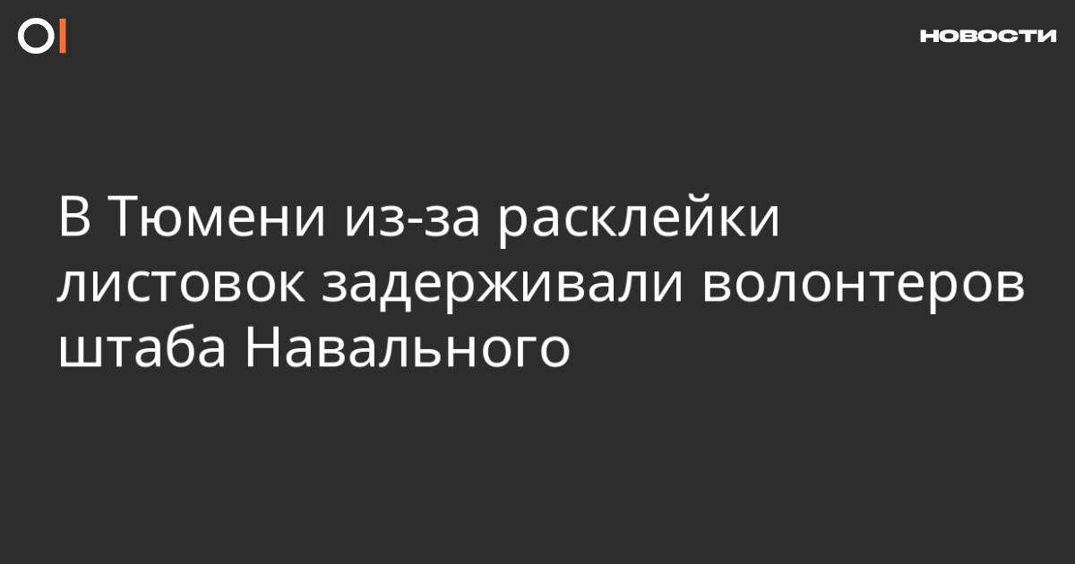 В Тюмени полиция задерживала двух волонтеров местного штаба Алексея Навального, которые расклеивали листовки о Забастовке избирателей. Один из них несовершеннолетний, сообщается в группе «Команда Навального|Тюмень» во «ВКонтакте».