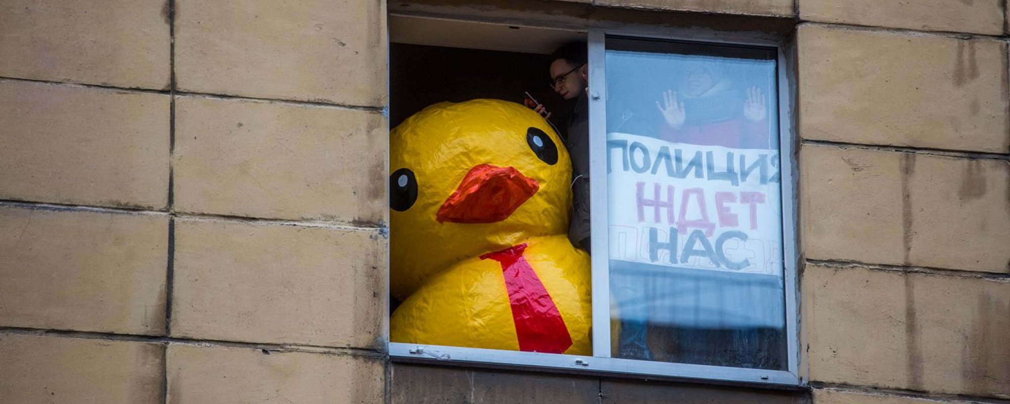 Ярослав Путров сообщил ОВД-Инфо, что активиста «Весны» Артема Гончаренко оставляют до суда в отделе полиции. На него составили протокол по ч. 8 ст. 20.2 КоАП (повторное нарушение порядка участия/проведения митинга) из-за перформанса с уточкой во время «Забастовки избирателей».