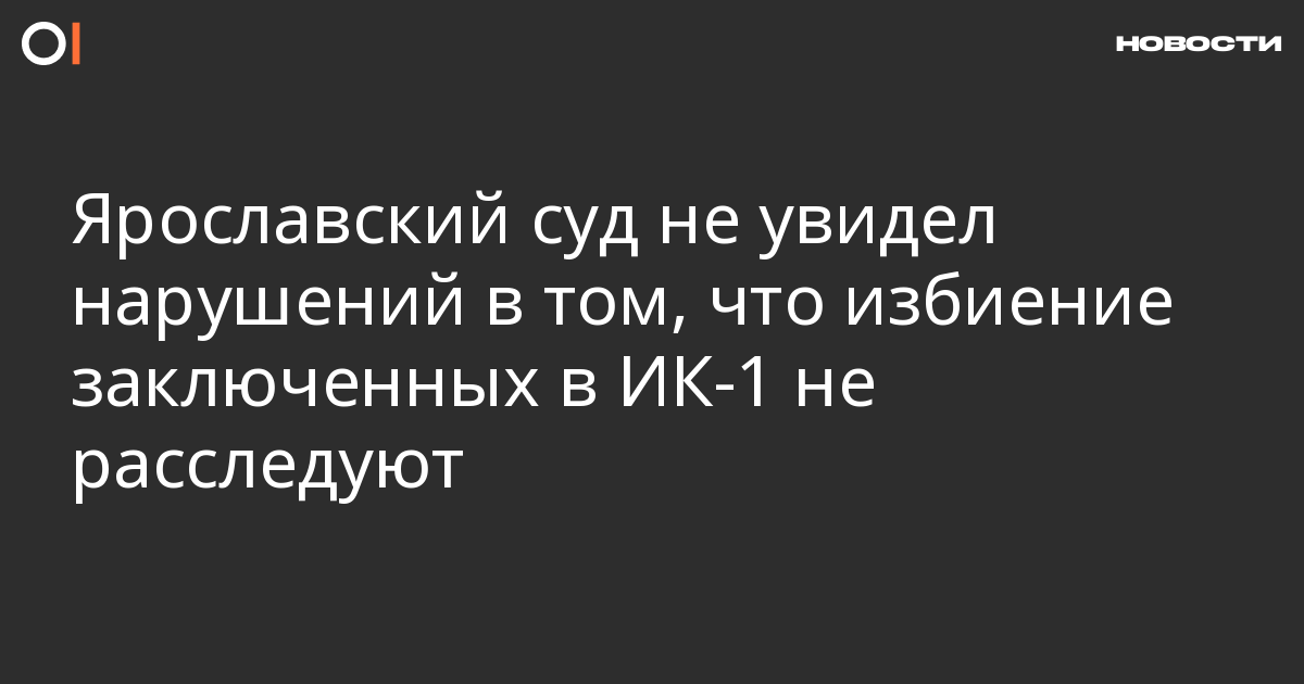 Ярославкий областной суд согласился с решением Заволжского суда, который назвал законным отказ следствия возбуждать уголовное дело об избиении заключенных в ИК № 1. Об этом в фейсбуке пишет правозащитный фонд «Общественный вердикт».