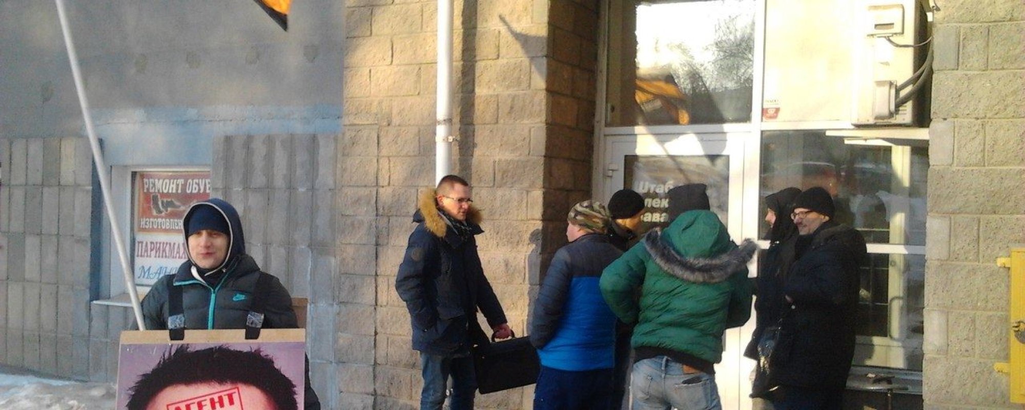 По странному стечению обстоятельств, в момент поломки двери у входа в штаб проходил пикет местного отделения «Народно-осбводительного движения» (НОД).
