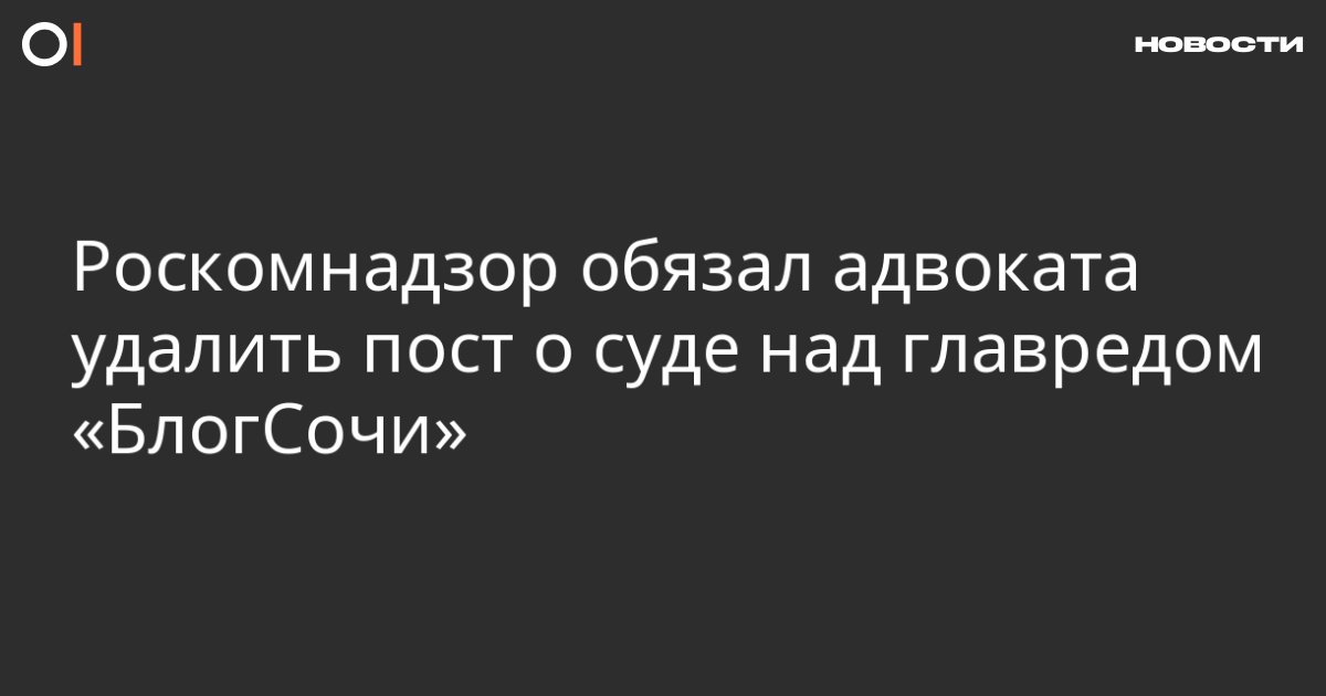 Роскомнадзор обязал адвоката Сергея Костюка удалить пост о судебном заседании по мере пресечения Александра Валова, главреда «БлогСочи». Об этом пишет «Кавказский Узел».