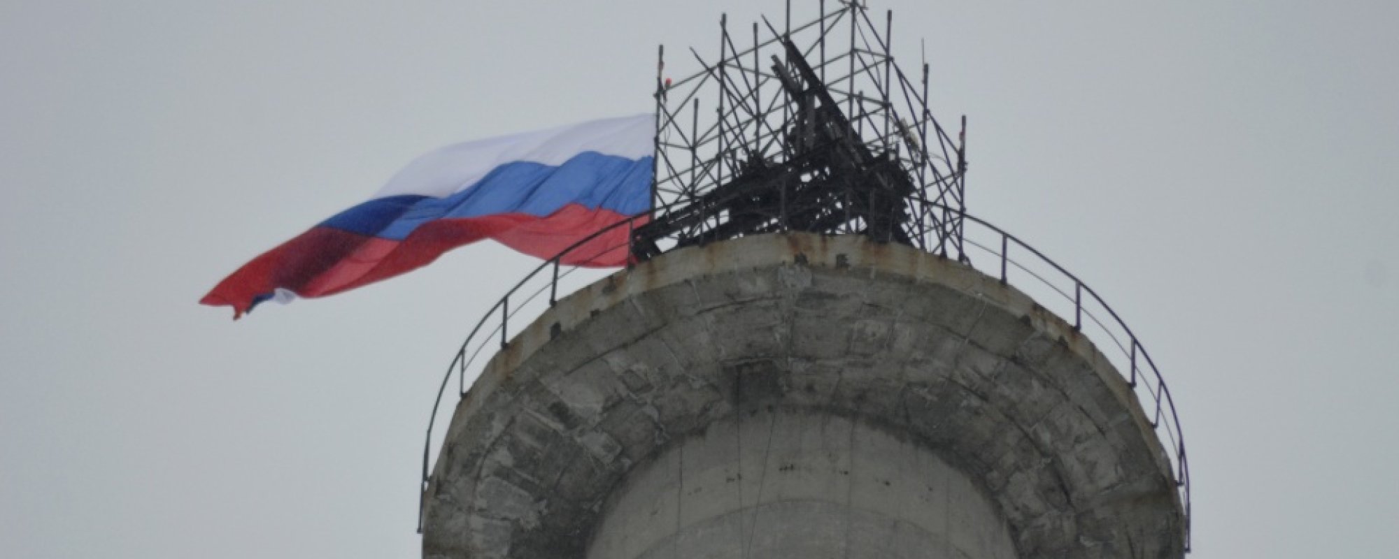 Телебашню, по информации издания, собираются взорвать 24 марта утром. Сейчас наверху здания находятся несколько активистов. Они повесили российский флаг.
