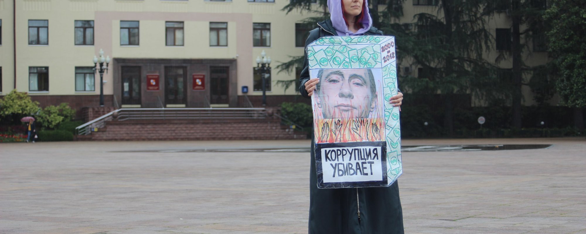 Во время акции Бархатова держала в руках плакат «Коррупция убивает». К активистке подошли судебные приставы, которые впоследствии задержали ее под предлогом того, что она не выплатила штраф. В настоящий момент она находится в Центральном районном отделе судебных приставов.