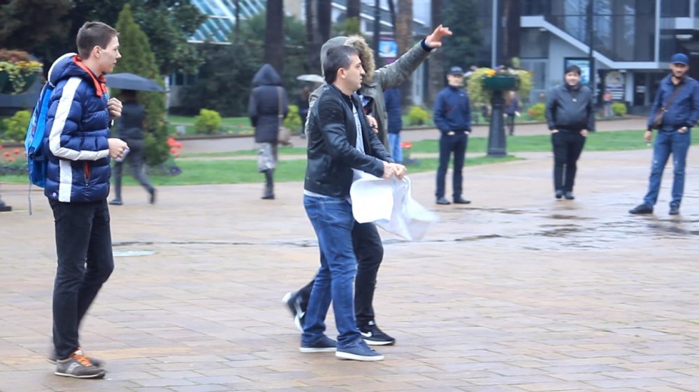 Провокатору удалось частично порвать плакат Туаева. Сотрудники полиции предложили активисту проехать с ними, чтобы написать жалобу, но тот отказался. По словам Туаева, до этого правоохранители дважды уже пытались прервать его пикетирование.