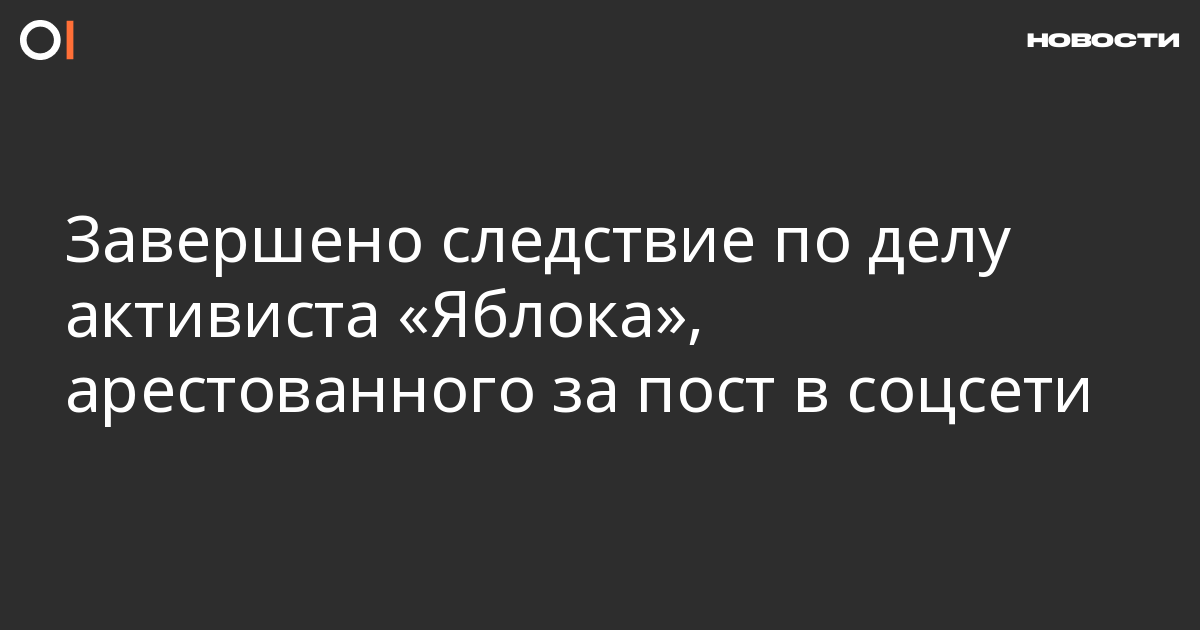28 марта стало известно об окончании следствия по делу против главы торопецкого отделения партии «Яблоко» Владимира Егорова, об этом сообщает информационно-аналитический центр «СОВА».