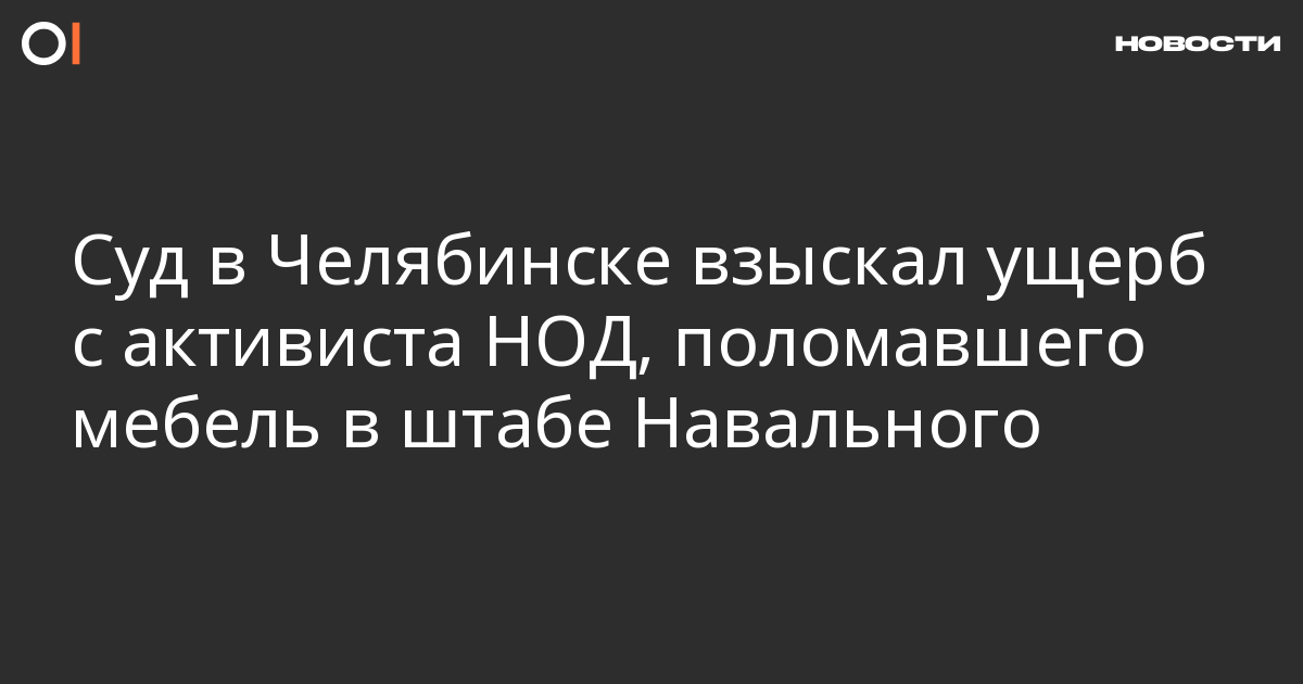 Мировой суд Курчатовского района Челябинска частично удовлетворил иск координатора штаба Алексея Навального Алексея Табалова к активисту НОД Сергею Ворончихину, который в декабре 2017 года поломал мебель в штабе. Об этом сам Табалов написал в фейсбуке.