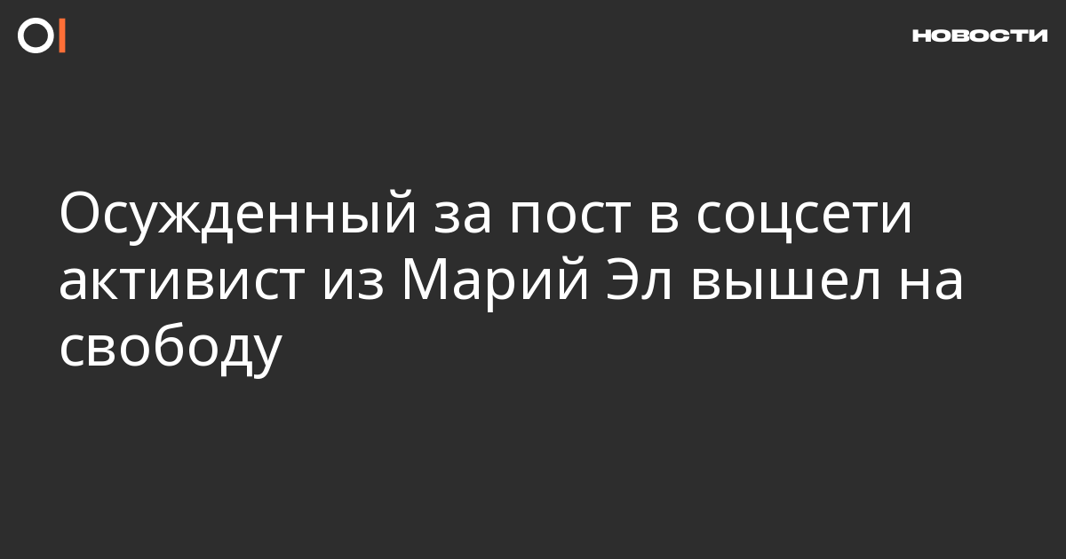 Гражданский активист из Марий Эл Евгений Пирогов, осужденный на два года за пост в соцсети, освободился из колонии. Об этом сообщает «Idel. Реалии».