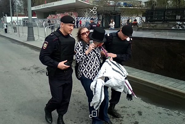 Сулейманову и Кононова задержали при попытке пронести на шествие чучело буржуя. В отделе на них составили протоколы о неповиновении законным требованиям сотрудников полиции (ст. 19.3 КоАП).