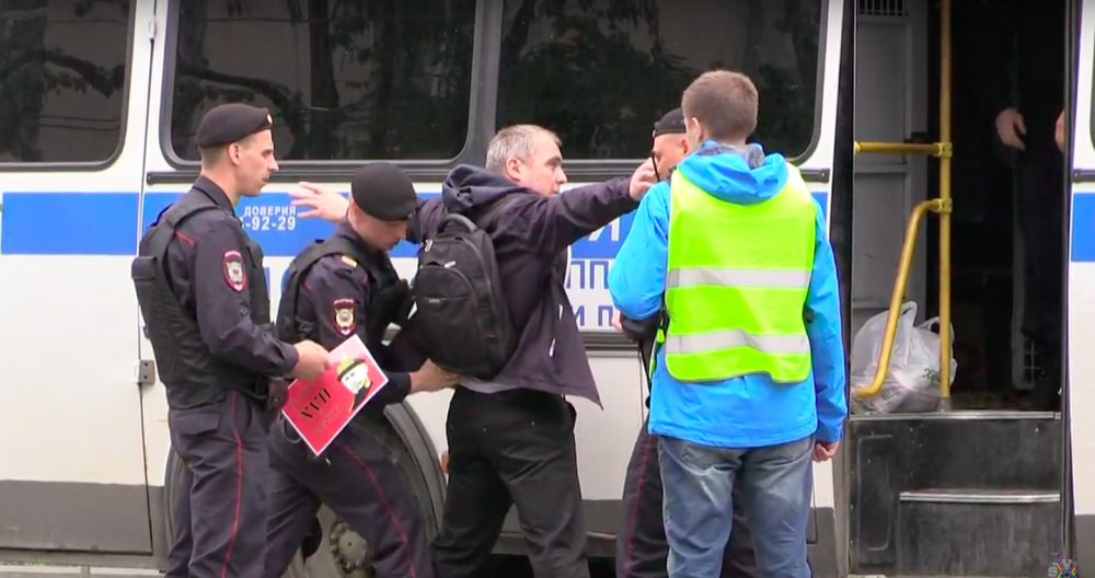 В Москве на митинге «Левого фронта» и Сергея Удальцова задержали одного человека. Онлайн-трансляцию, куда попало задержание, выложили на YouTube в канал «sotavision».