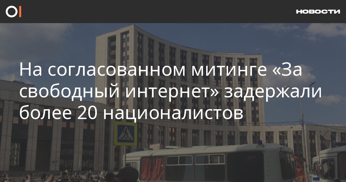 На согласованном митинге «За свободный интернет» в Москве задержали более 20 человек из «Черного блока», комитета «Нация и свобода» и Ассоциации народного сопротивления. Об этом ОВД-Инфо сообщил глава комитета «Нация и свобода» Владимир Басманов.