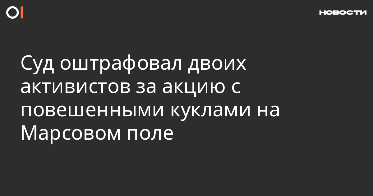 Дзержинский районный суд Петербурга оштрафовал на 10 тысяч рублей активистов Николая Петросяна и Олега Усова за акцию с повешенными куклами на Марсовом поле, пишут в телеграм-канале «Весны».