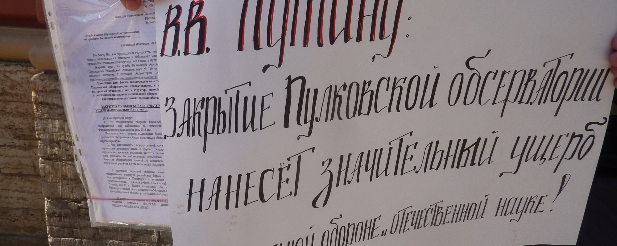 Активистов задержали у здания приемной полпредства президента. Они пытались подать обращение президенту. Причиной задержания также стал плакат о том, что прекращение наблюдений ГАО РАН — «удар по национальной безопасности и ущерб для отечественной науки».