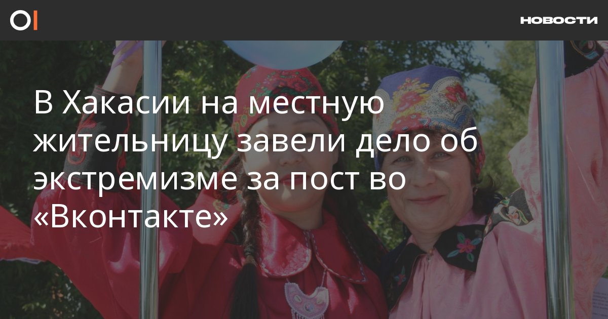 На популяризаторку хакасской культуры, как называет ее онлайн-медиа, завели дело по части 2 статьи 280 УК — публичные призывы к экстремизму через интернет.