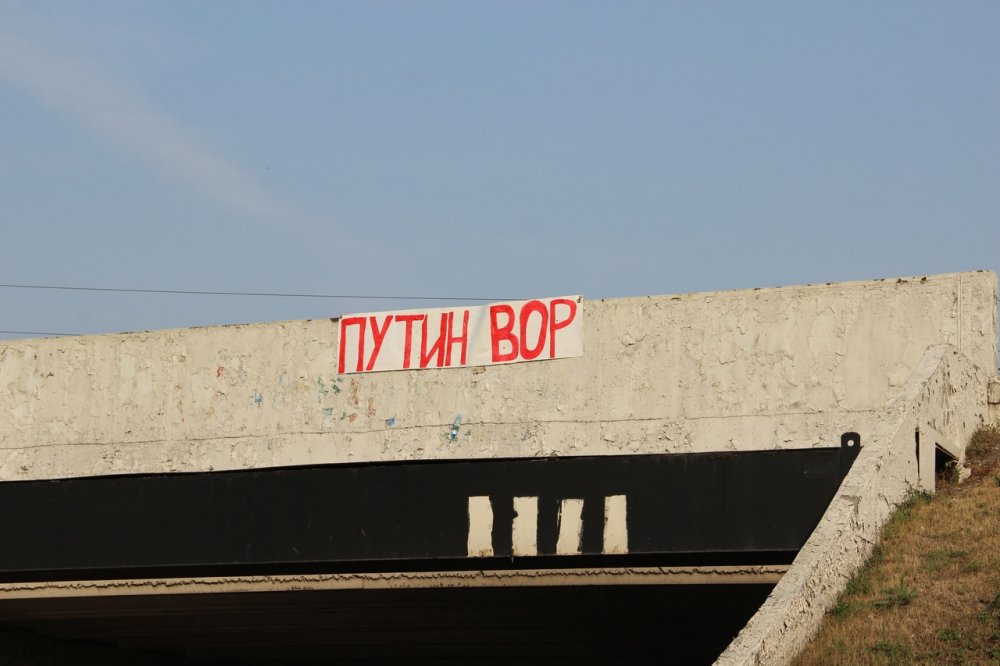 Затем, пишут в группе, Земцову и Регузова заставили написать объяснительные «за прошедшую субботу» — их подозревают в вывешивании плаката «Путин ВОР» на транспортной развязке Левого берега.