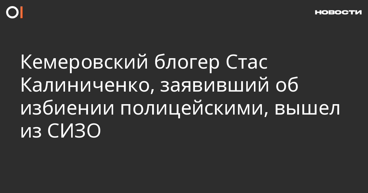 Кемеровский блогер Станислав Калиниченко, который в 2016 году заявил об избиении полицейскими, вышел из СИЗО. Об этом в своем твиттере написала Ксения Пахомова, координатор штаба Алексея Навального в Кемерово.