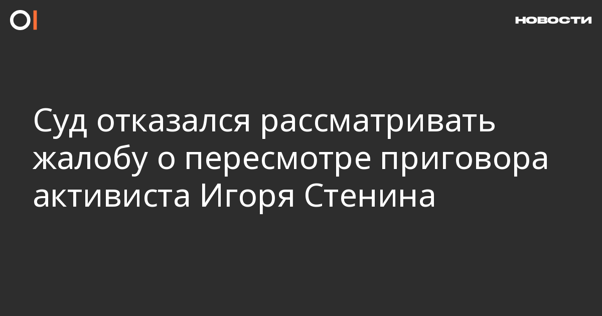 Астраханский областной суд отказался рассматривать кассационную жалобу о пересмотре приговора лидера организации «Русские Астрахани» Игоря Стенина, которого признали виновным в публичных призывах к экстремизму из-за репоста во «ВКонтакте». Об этом сообщает «Кавказский узел».