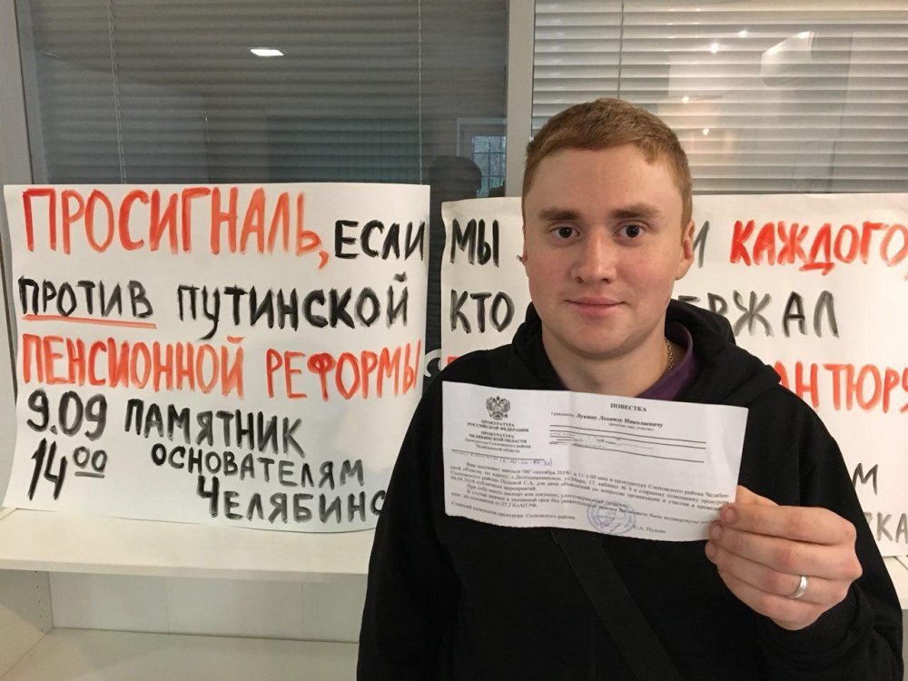По словам Ольги Лукиной, матери Леонида, причиной вызова в прокуратуру стало то, что Лукин распространял листовки о проведении 9 сентября акции против пенсионной реформы.