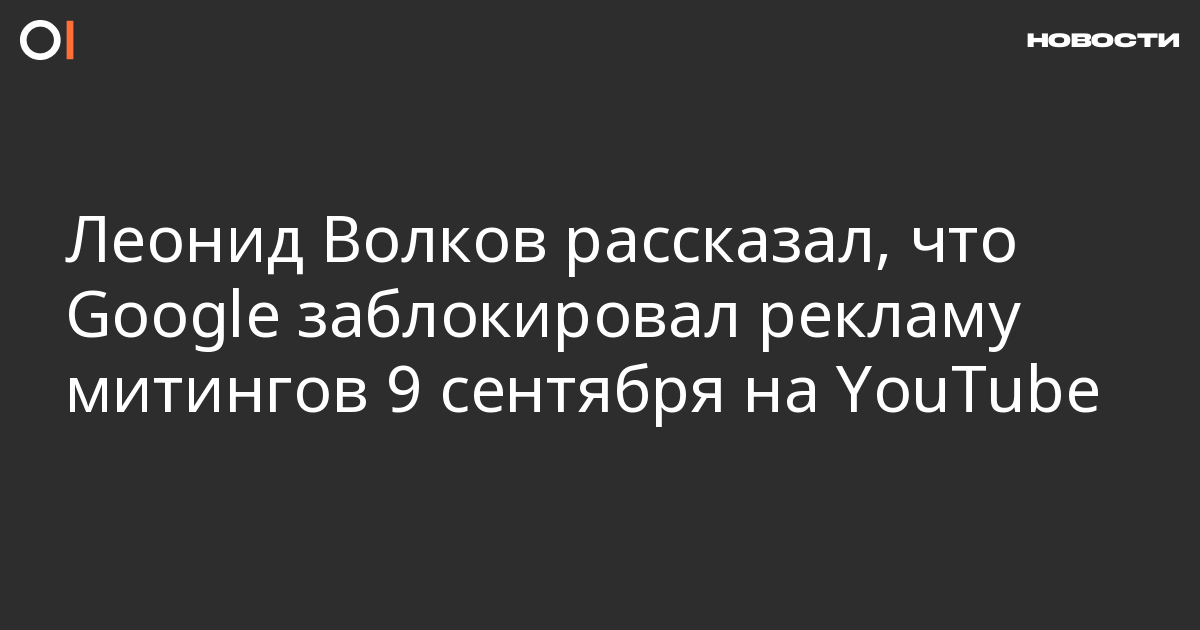 Волков пишет что блокировка произошла в полночь за два дня до митингов 9 сентября. «Впервые в истории компания Google удовлетворила незаконные требования российских властей и снесла нашу платную рекламу митинга 9/9 из YouTube. Ротация большей части наших роликов заблокирована», — написал Волков.