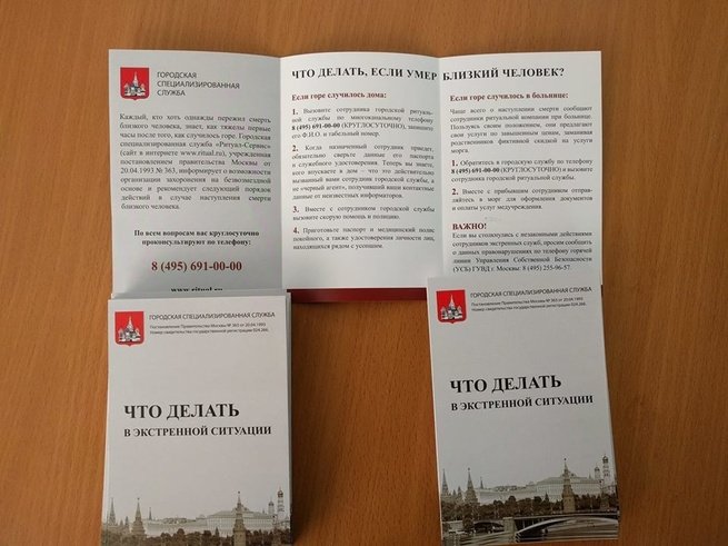 В Москве неизвестные оставили брошюры «Что делать, если умер близкий человек» службы «Ритуал» у входа в офис «Голоса». Об этом сообщается на сайте движения.