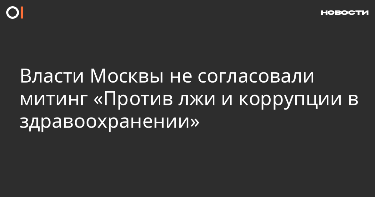 Власти Москвы не согласовали митинг «Против лжи и коррупции в здравоохранении». Об этом говорится на странице «Центра патологии речи и нейрореабилитации, реформы и преобразования» в фейсбуке.