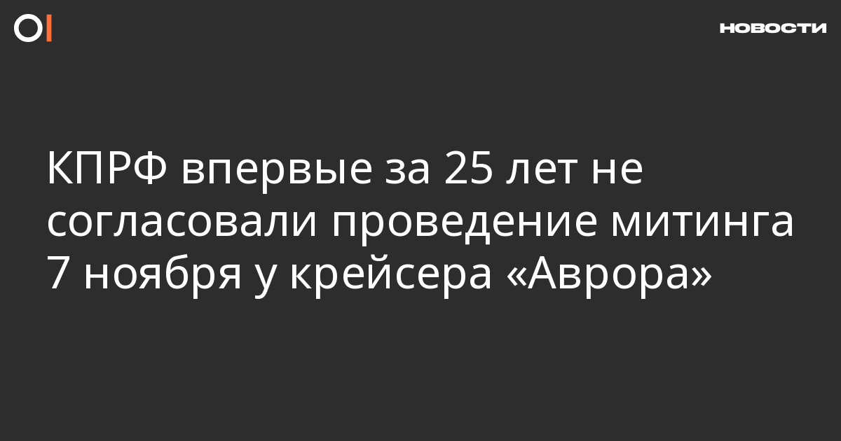 В Петербурге отказали заявителям от партии КПРФ в проведении шествия по набережной у крейсера «Авроры» с митингом возле самого корабля. Об этом пишет «Новая газета».