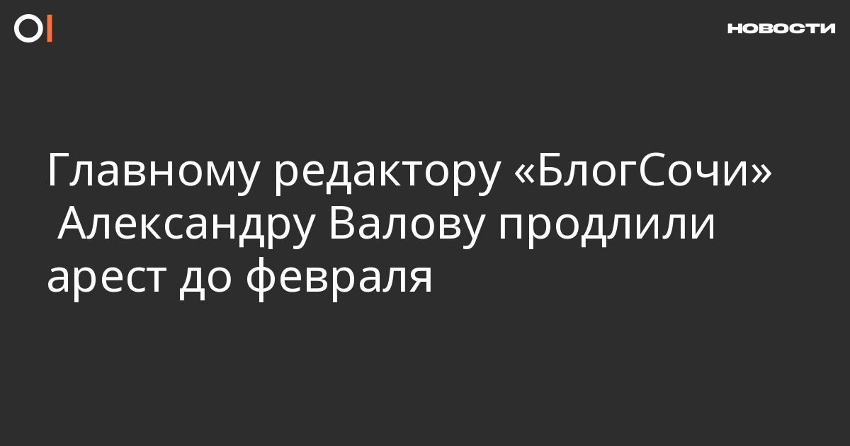 Суд продлил до февраля арест главного редактора «БлогСочи» Александра Валова, сообщает «Кавказский узел» со ссылкой на защитника Сергея Костюка.