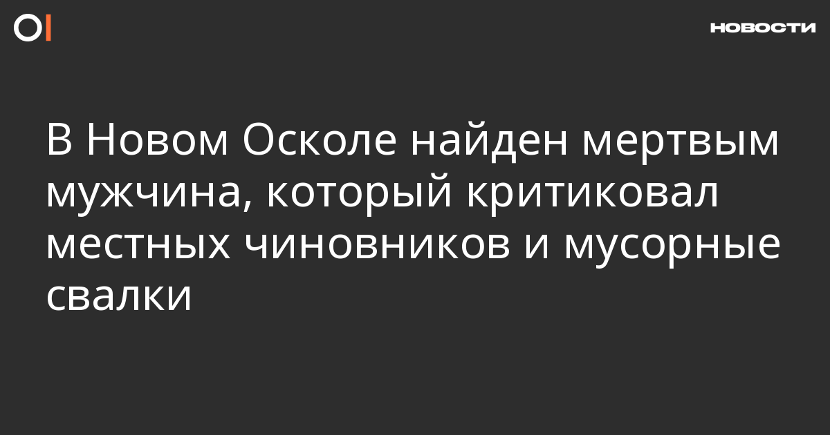 В Новом Осколе Белгородской области нашли мертвым Владимира Троцкого, администратора группы «Ад и треш Новый Оскол» в «Одноклассниках», в которой критиковались местные чиновники и освещалась проблема утилизации мусора. Сообщение о смерти мужчины появилось вечером 2 декабря в группе «Пусть Говорят Белгородская область» во «ВКонтакте».