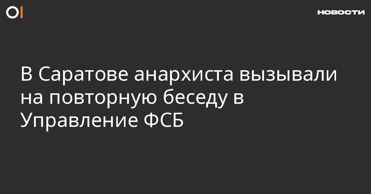 В саратовское Управление ФСБ на профилактическую беседу вызывали местного жителя по имени Михаил из-за его анархистских взглядов. Месяц назад с ним уже проводили такую же беседу. Об этом ОВД-Инфо сообщил сам Михаил.