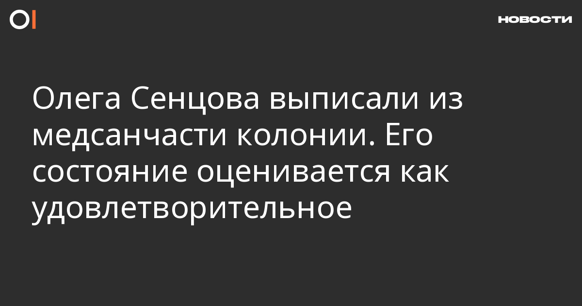 Украинского режиссера Олега Сенцова выписали из медицинской части ИК-8 в Лабытнанги. Его поместили туда во время 145-дневной голодовки. Об этом сообщает ТАСС со ссылкой на пресс-службу ФСИН по Ямало-Ненецкому автономному округу.